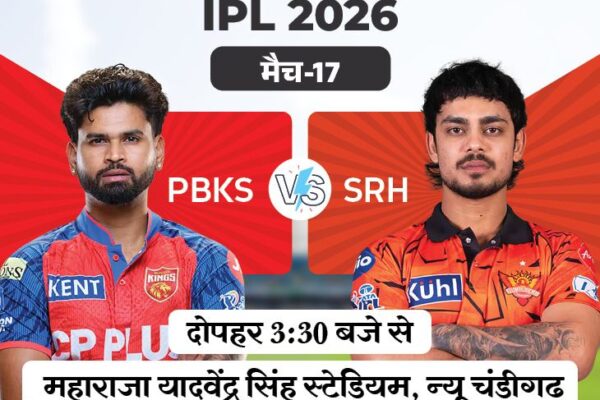 IPL 2026 में आज PBKS का मुकाबला SRH से। हैदराबाद का पलड़ा भारी, पिछले 4 मैच जीते। क्या पंजाब किंग्स पलट पाएगी बाजी? जानिए संभावित प्लेइंग इलेवन और पिच रिपोर्ट।
